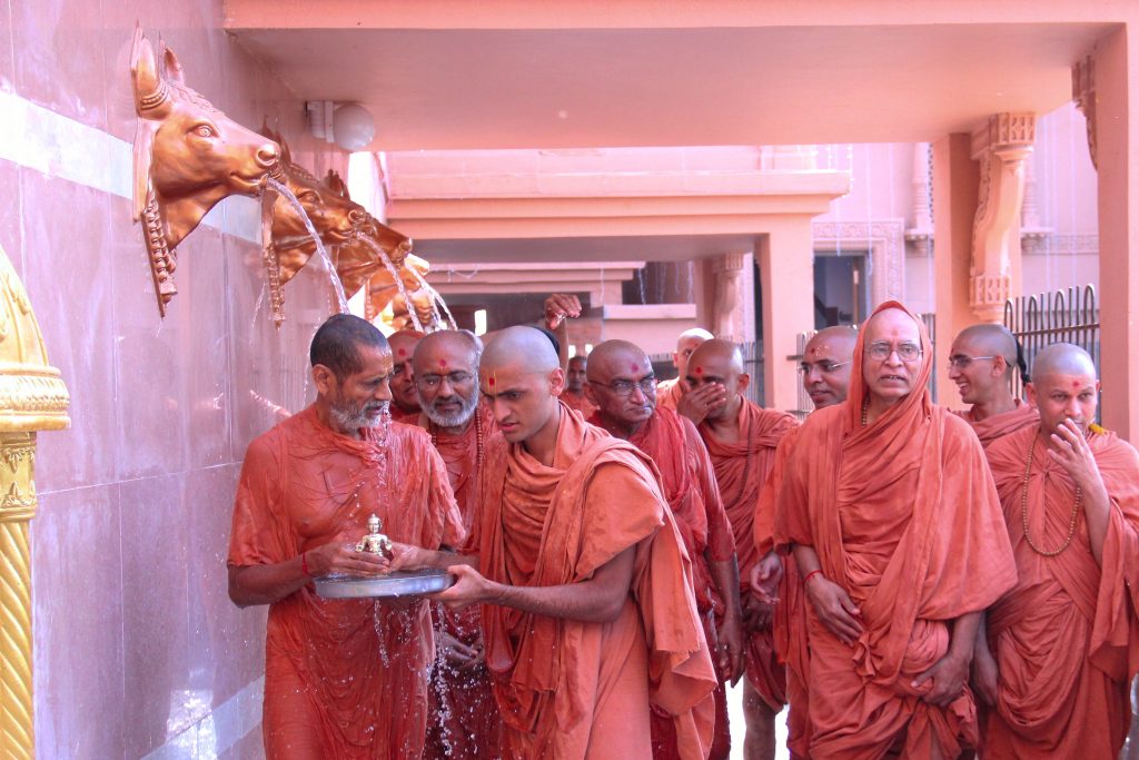 Temple has four distinct circumambulation rounds. Amidst those four, 108-Gaumukh-snan-pradakshina path shows and makes pilgrims feel the divinity of another world. As it is well-sculptured with 108 cow-mouths which will pour the most holiest narmada-water on pilgrims while circumambulating the temple. The water is fetched from Narmada and is used in anointing 24 incarnations of The God, the sacred water of anointment fills up Neelkanth Sarovar. From that, flows the gaumukh-dhara resplendent with divinity and splendour. Due to great spiritual significance, Pilgrims feel to be sin-free on bathing here.